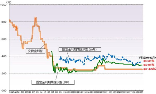これは『民間金融機関の住宅ローン金利の推移』です。